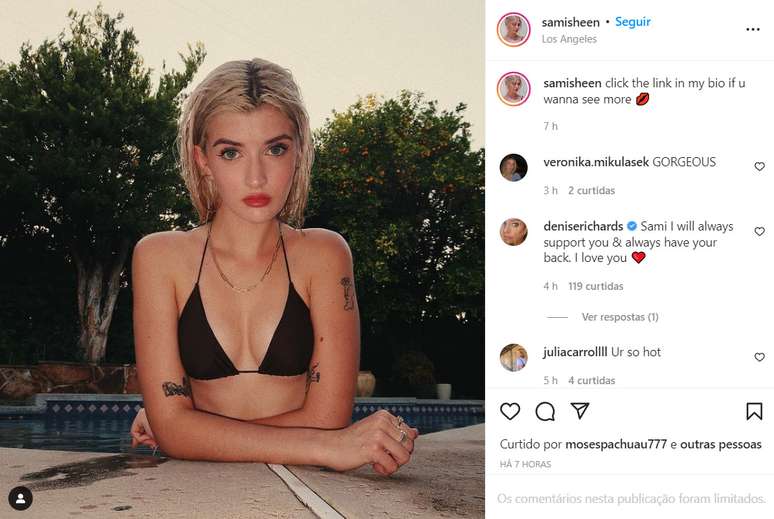 Conhecida pelo picante "Garotas Selvagens" (1996) e "007 - O Mundo Não é o Bastante" (1997), a mãe da jovem comentou a postagem para demonstrar concordância - ou conformidade - com a decisão. "Sami, eu sempre te apoiei e sempre te apoiarei. Eu te amo", escreveu Richards.
