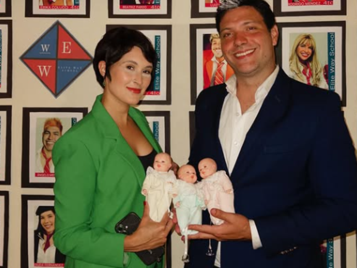 Para compor o look, Bia usou uma peruca curta semelhante ao antigo corte de Fátima, enquanto Caio reproduziu a mecha grisalha característica de Bonner. O casal completou a produção segurando bonecos representando os trigêmeos da família, Bia, Laura e Vinícius, nascidos em 1997.