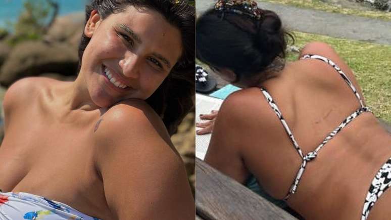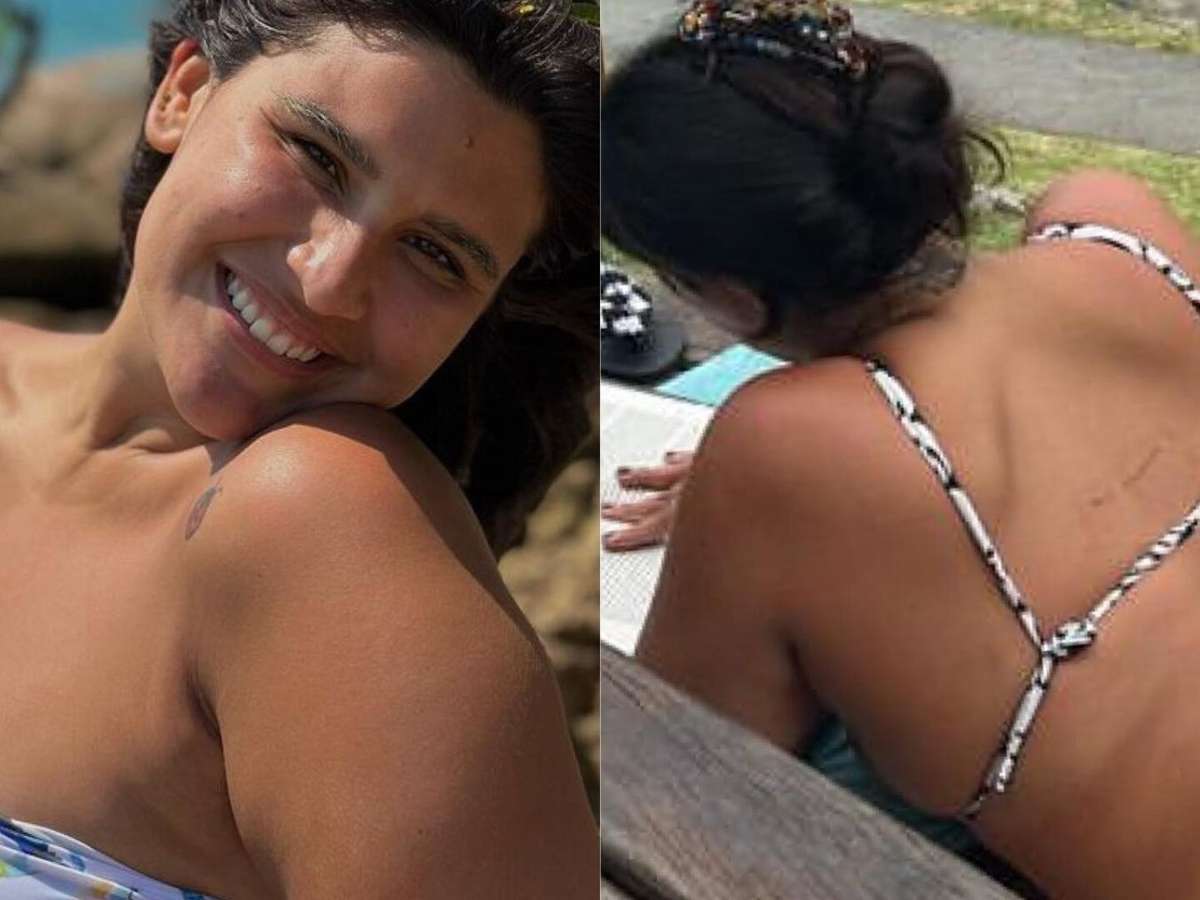 Giulia Costa, filha da atriz Flávia Alessandra, chama atenção e causa alvoroço ao usar biquíni cavado na praia