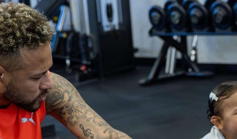 Pouco antes do seu time entrar em campo, Neymar compartilhou uma série de fotos na academia ao lado da filha Mavie, fruto do seu casamento com Bruna Biancardi. Aos 2 anos, a irmã de Davi Lucca, Helena e Mel repetiu os exercícios do papai famoso, se divertiu, mas também "suou a camisa".