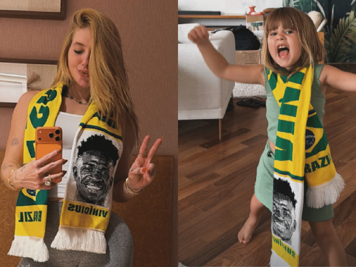Empolgada com a partida do Brasil, a influenciadora registrou Maria Alice pronta para torcer mais uma vez. Ao publicar a imagem da filha usando o acessório, escreveu: "Hoje tem jogo. Vai, Brasil!", reforçando a animação da família para acompanhar o amistoso da Seleção.