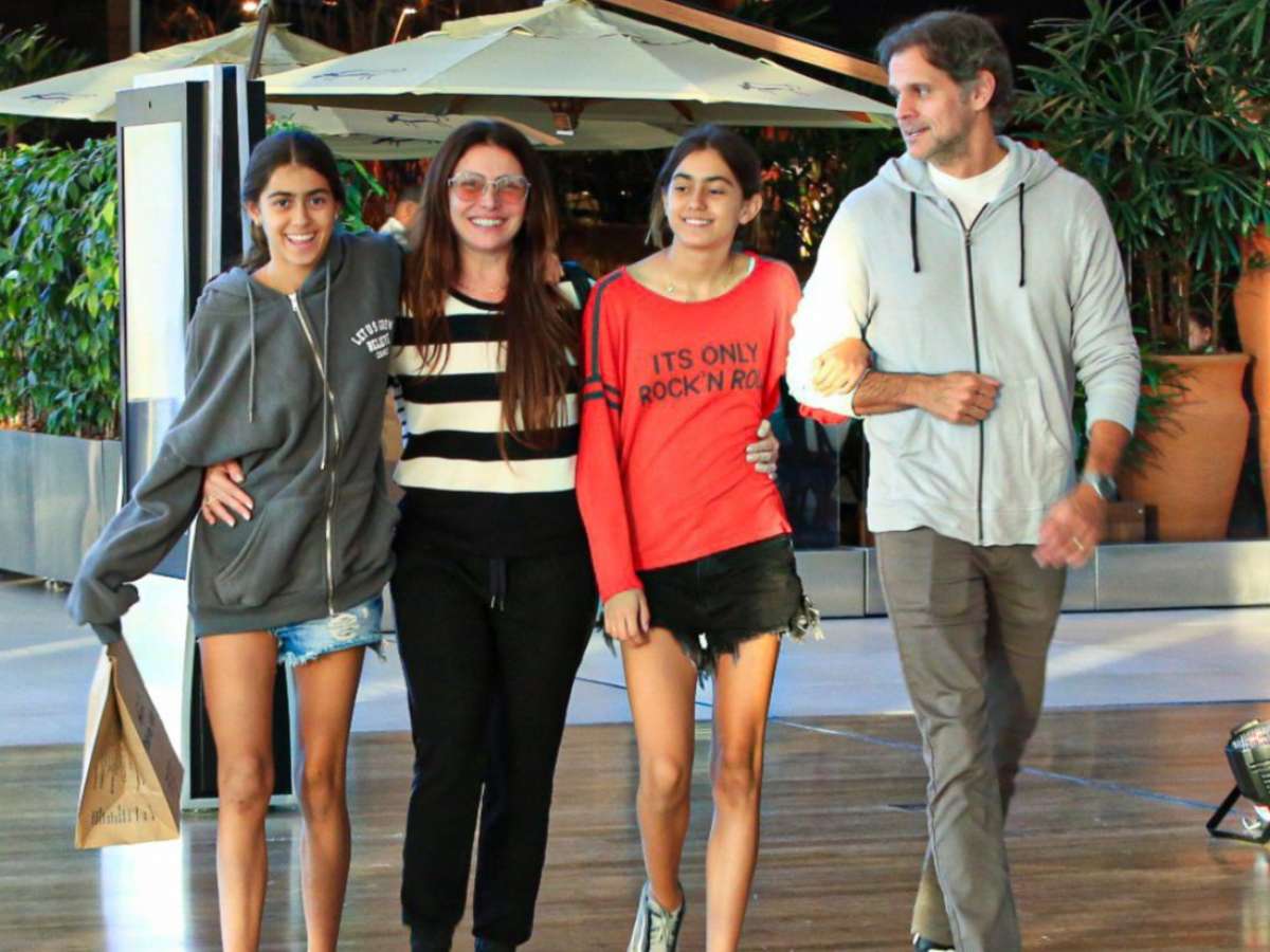 Giovanna Antonelli e o diretor Leonardo Nogueira levaram as filhas gêmeas para um almoço em família. No shopping, adolescentes chamaram atenção pela altura