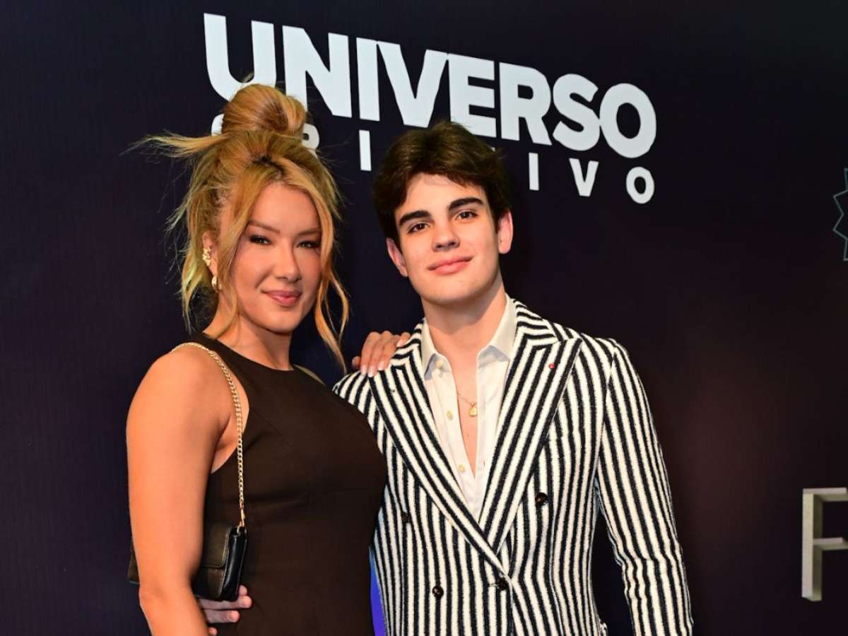 Filho caçula de Faustão chega com ex-bailarina do pai 17 anos mais velha em festa