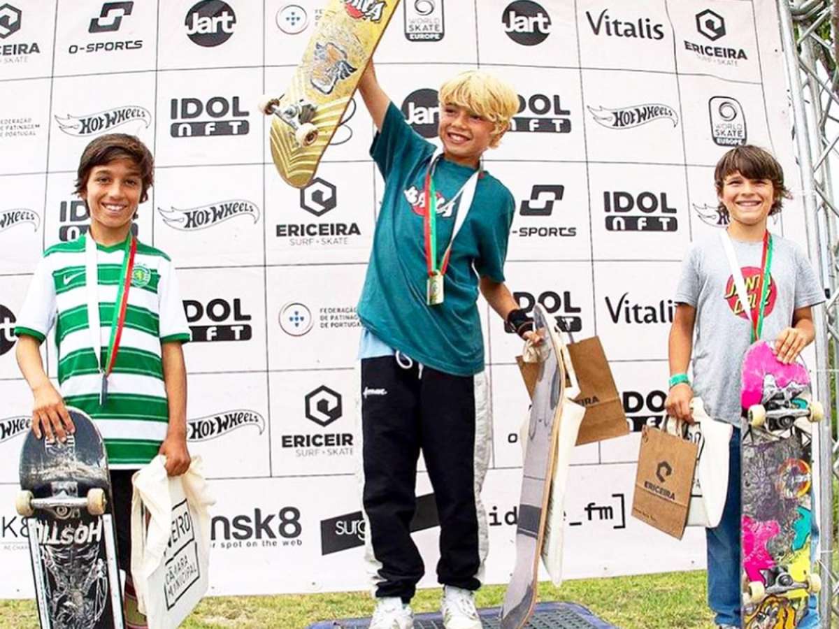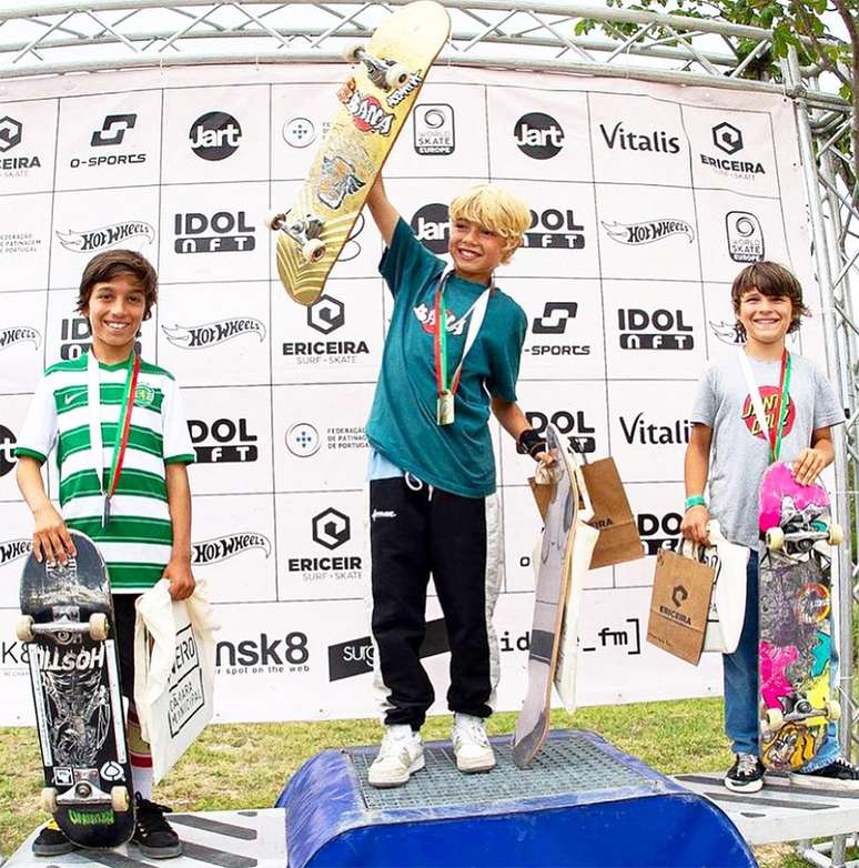 Filho mais velho de Luana Piovani e Pedro Scooby, o menino Dom, de 10 anos de idade, venceu um campeonato de skate em Aveiro, em Portugal.