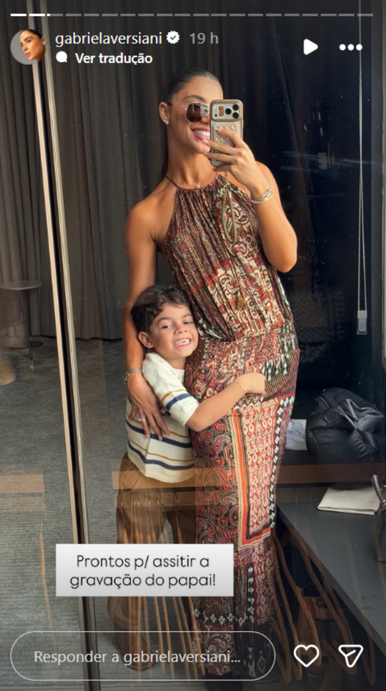 Na legenda da publicação, Gabriela destacou o momento em família ao escrever: "Prontos para assistir a gravação do papai".