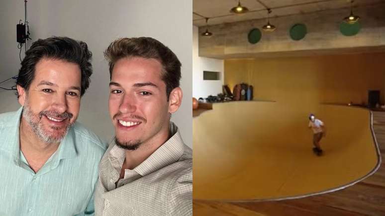 Pietro, filho de Murilo Benício, compartilhou um momento inusitado nas redes, onde brinca em uma pista de skate dentro da casa do pai.