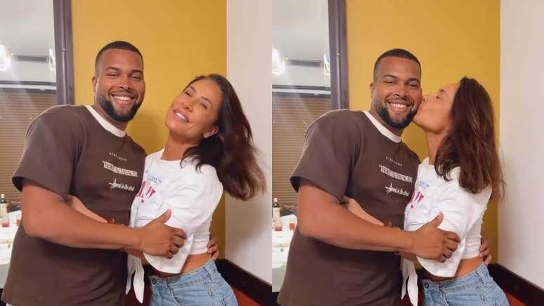 "Feliz aniversário, meu enteado! Saúde e juízo", escreveu Scheila com um registro em que aparece dando um beijinho no rosto de Maurício.