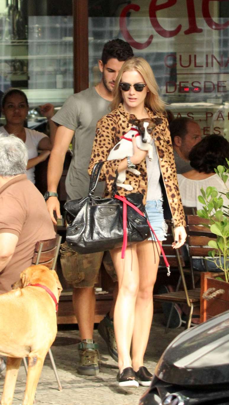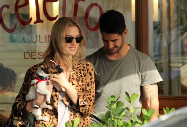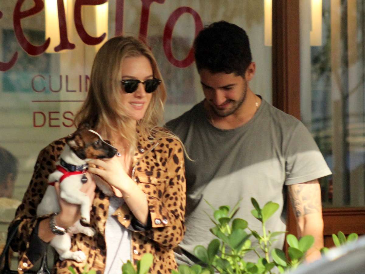 Na tarde desta sexta-feira (24), Fiorella Mattheis e o jogador Pato almoçaram juntos em um restaurante no Leblon, no Rio de Janeiro. O casal também levou o cachorrinho da atriz para o passeio.