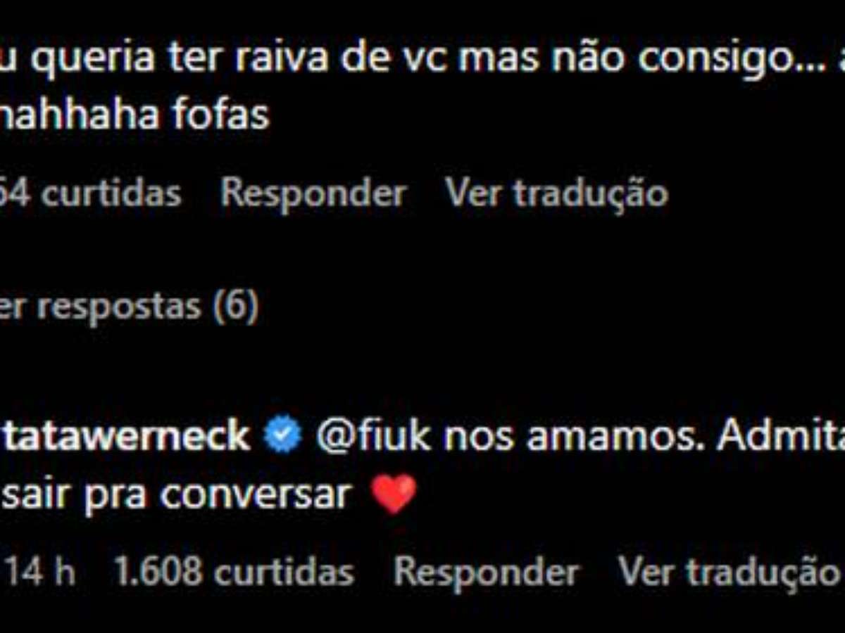"Eu queria ter raiva de você, mas não consigo. Alguém me ajuda?", escreveu o artista em uma postagem em que a humorista aparece brincando com a filha, Clara. O comentário não passou despercebido pela comediante, que convidou Fiuk para "sair para conversar". "Nos amamos, admita", brincou.
