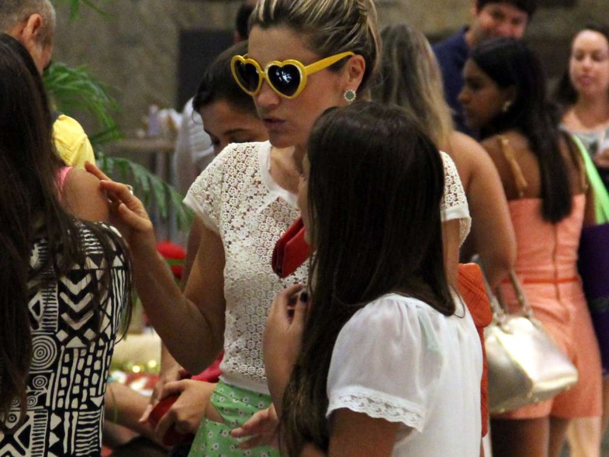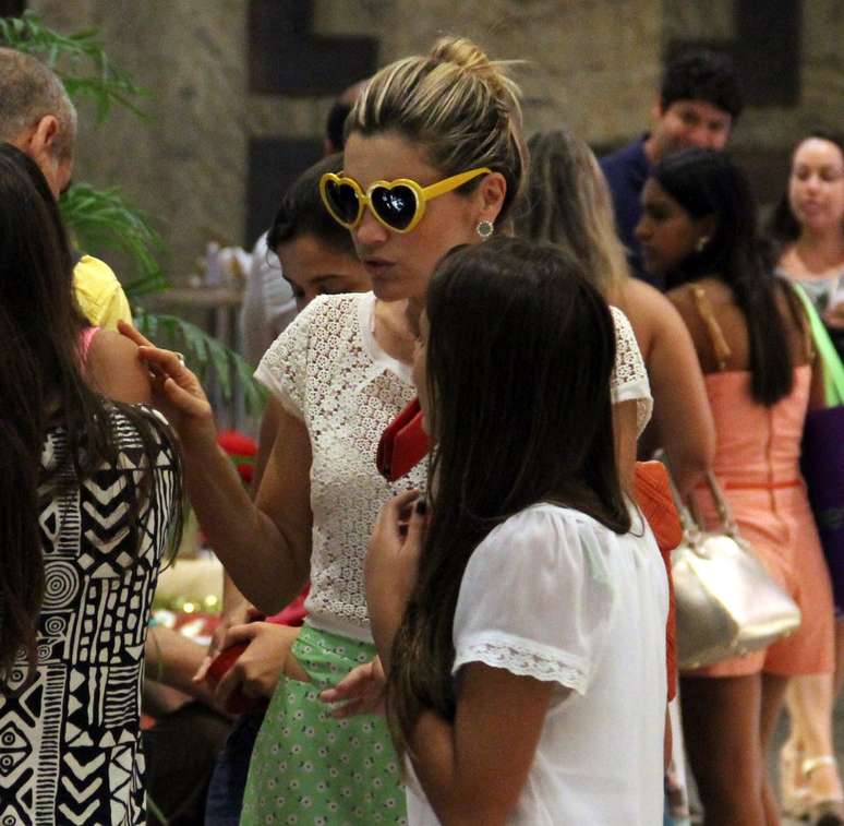 Flávia Alessandra passeia no shopping com a filha no Rio