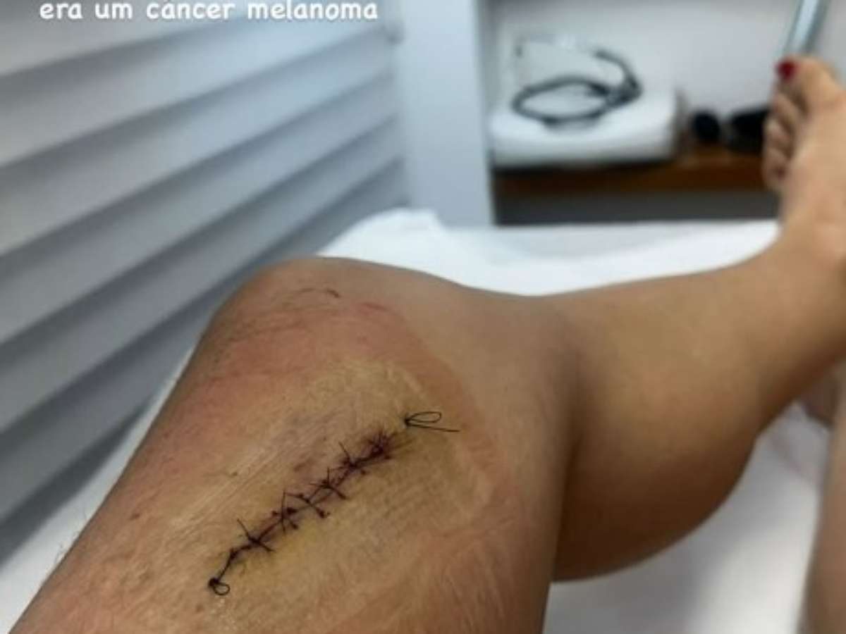 Flávia Monteiro mostra cicatriz que ficou em sua perna após atriz remover o tumor que lhe causou câncer de pele; veja