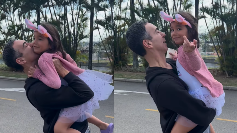 Fofura! César Tralli almoça marmita com toque especial da filha: 'Manuella colheu'