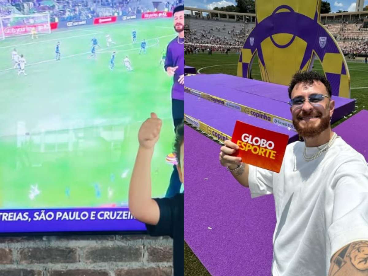 O novo apresentador do Globo Esporte compartilha foto de homenagem do filho; Fred Bruno encanta web com registro do herdeiro