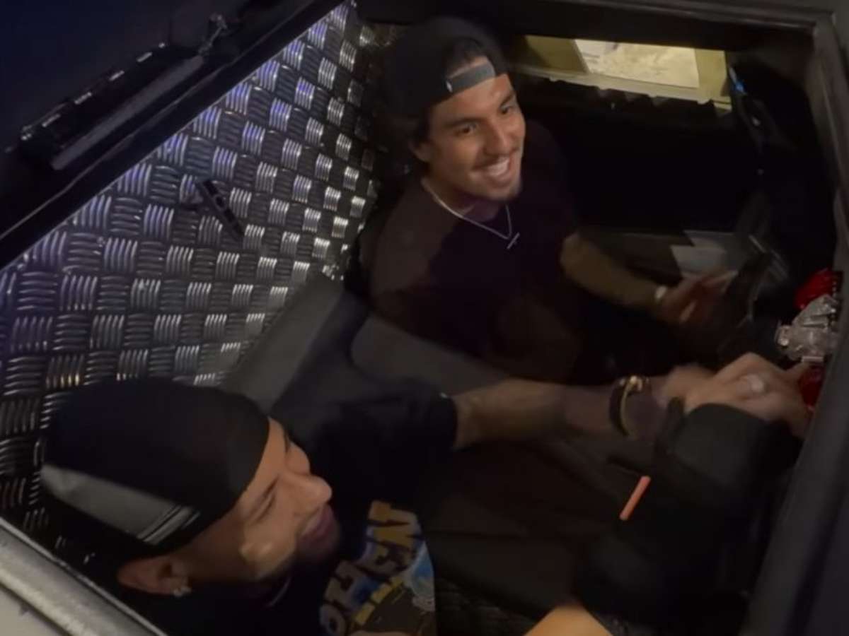 Gabriel Medina conhece Batmóvel de Neymar durante visita ao jogador