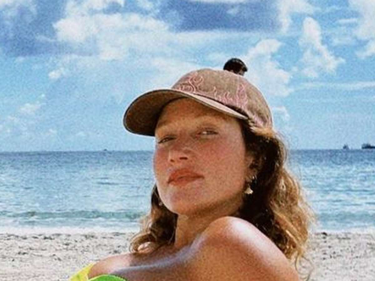 Gabriela Pugliesi para a web ao mostrar barrigão em clique seminu em cenário paradisíaco