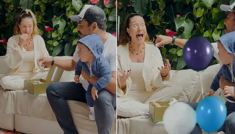 "É menino", gritou a influencer, empolgada. Túlio pulou e assustou o primeiro filho do casa, Lion, que fez cara de choro no vídeo.