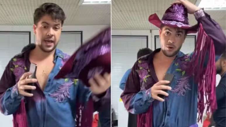 O influenciador expôs em suas redes sociais a dificuldade que passou com sua roupa para a atração; confira