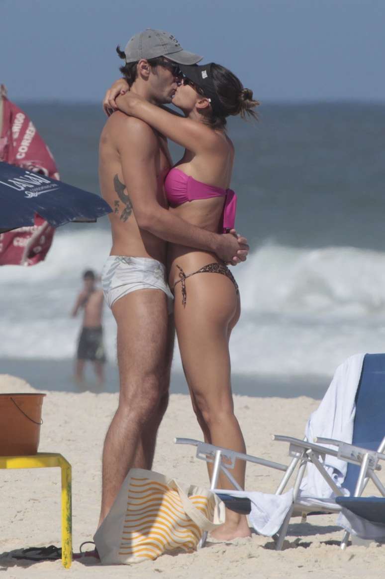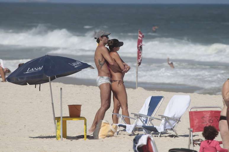 Giba e a namorada, a modelo Maria Luiza Daudt, aproveitaram a tarde de sol desta sexta-feira (24) no Rio de Janeiro para curtir a praia na Barra da Tijuca. Durante o passeio, o casal não se desgrudou e foi clicado trocado beijos e carinhos mais ousados com direito a mão boba.