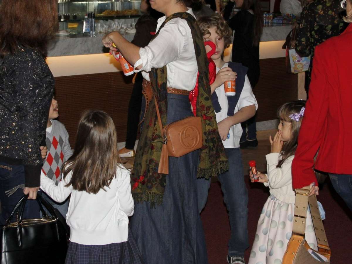 Neste sábado (26), a atriz Giovanna Antonelli levou as filhas Antônia e Sofia, e o filho mais velho, Pietro, para assistir ao espetáculo 'A Bela e A Fera', no Teatro Bradesco, no Rio de Janeiro