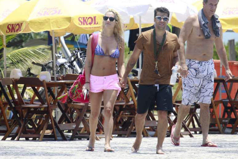 Bruno Gagliasso e Giovanna Ewbank aproveitaram a folga nesta quinta-feira (16) para curtir uma praia na Barra da Tijuca, zona oeste do Rio de Janeiro. O casal foi clicado no calçadão e, em seguida, o ator praticou stand up paddle