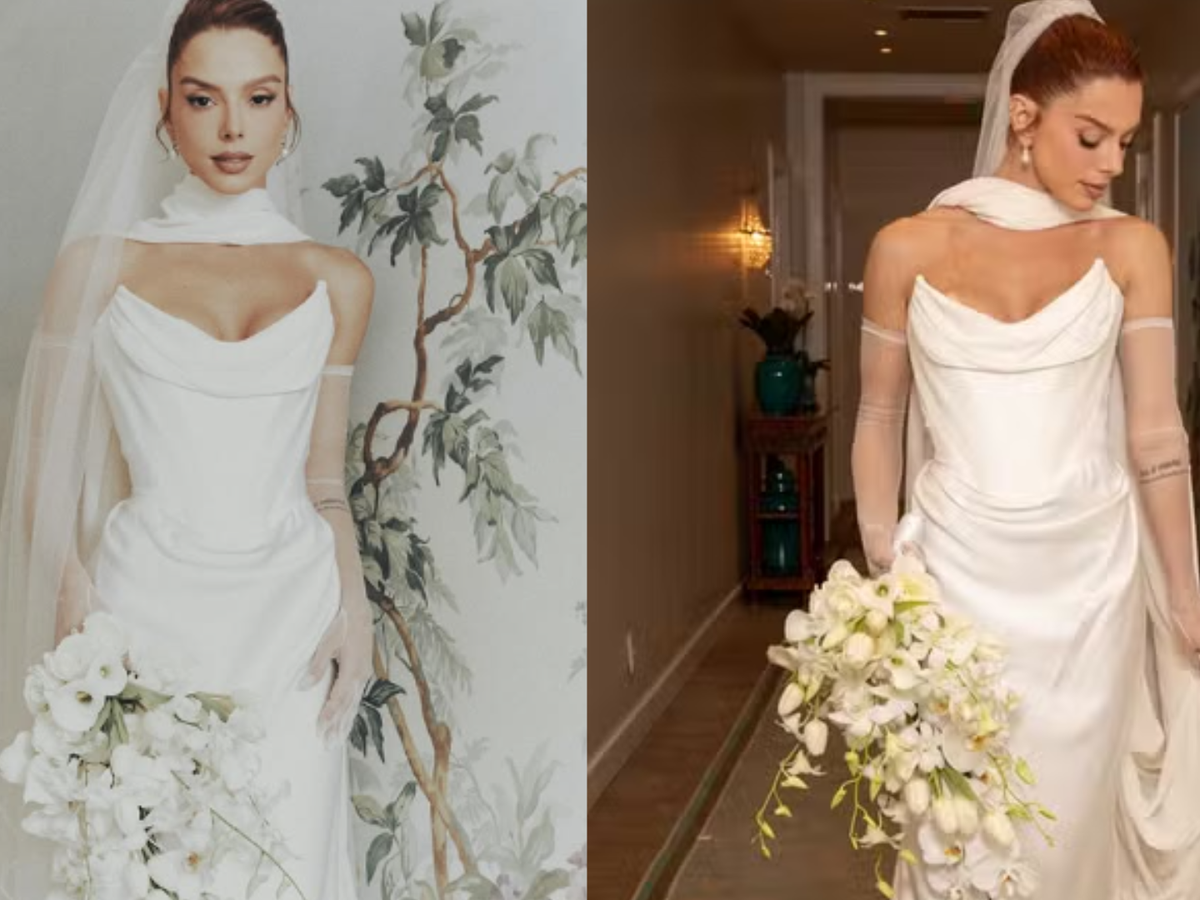Giovanna Lancellotti se casa no Cristo Redentor e vestido dá o que falar