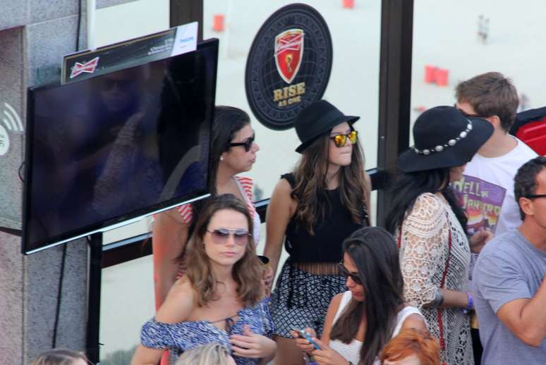 Ao lado de amigas, a atriz Giovanna Lancelotti e a modelo Letícia Birkheuer se divertiram na pool party do Hotel Pestana Copacabana, no Rio de Janeiro, neste domingo (15).