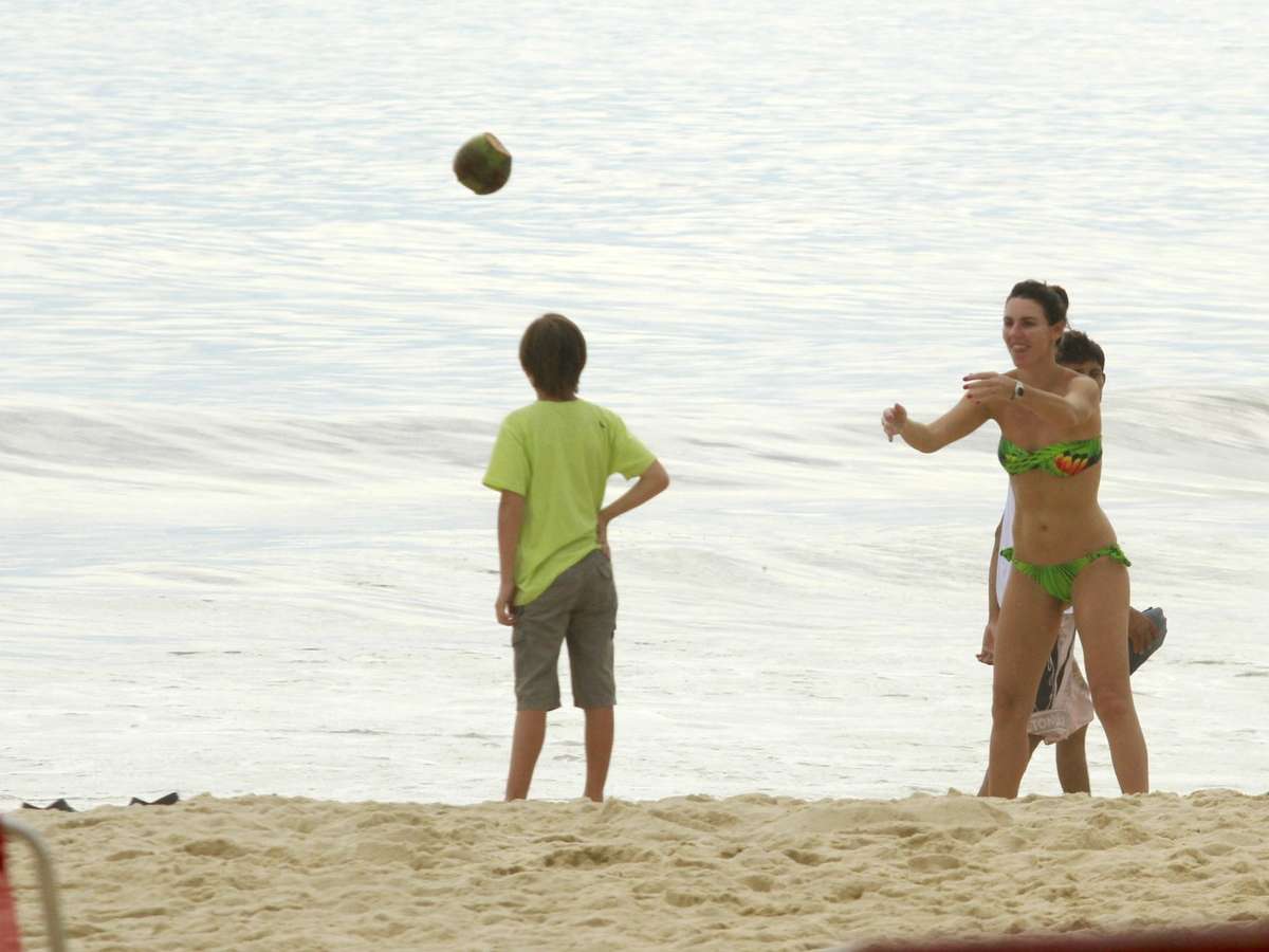 A apresentadora do Esporte Espetacular, da TV Globo, Glenda Kozlowski, brincou com seu filho mais novo, Eduardo, na tarde desta sábado (15), na praia de Ipanema, na Zona Sul do Rio de Janeiro. Os dois arremessaram um coco na areia durante um bom tempo, aparentemente em um desafio de quem conseguia mandar o objeto mais longe.