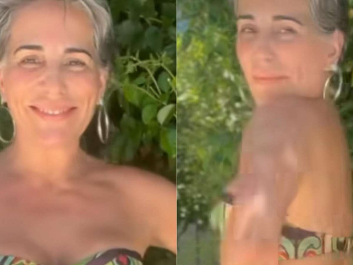Atriz Gloria Pires, de 'Terra e Paixão', elege biquíni sem alça para curtir dia na piscina e surpreende os fãs nas redes sociais