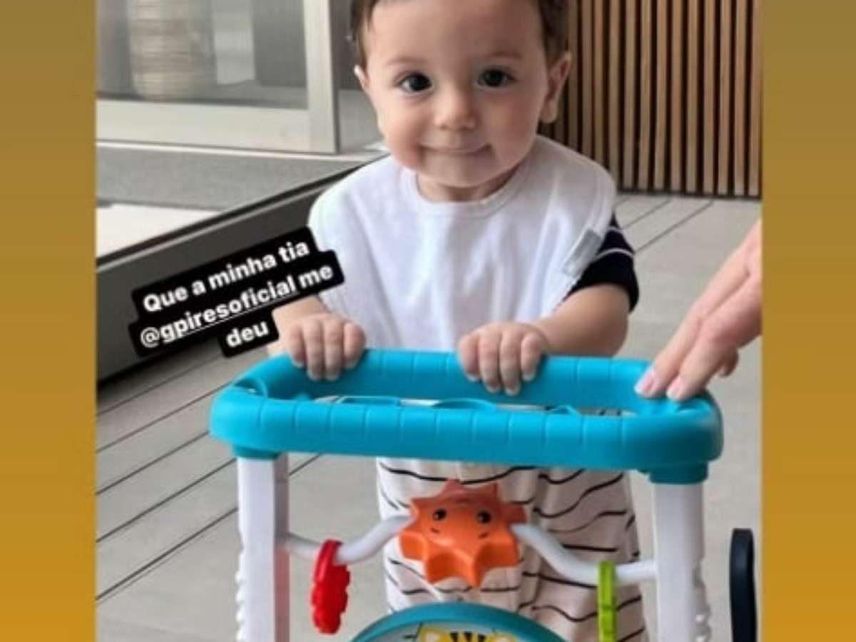 A atriz publicou cliques do bebê cheio de fofura e todo feliz, com seu mais novo brinquedo, dado por ninguém mais, ninguém menos, que, Gloria Pires.
