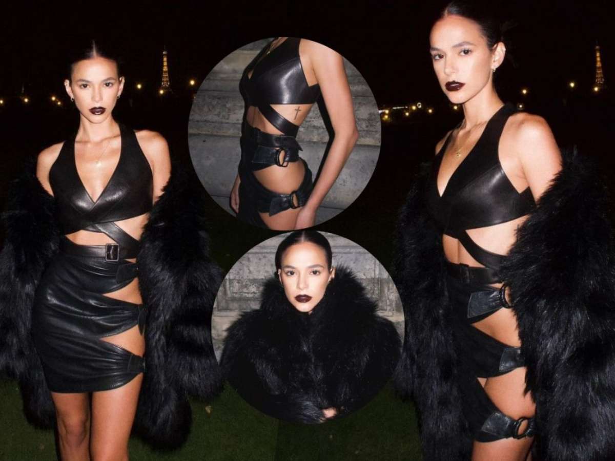 Gótica e sexy! Bruna Marquezine usa look de couro com recortes picantes e dispensa lingerie