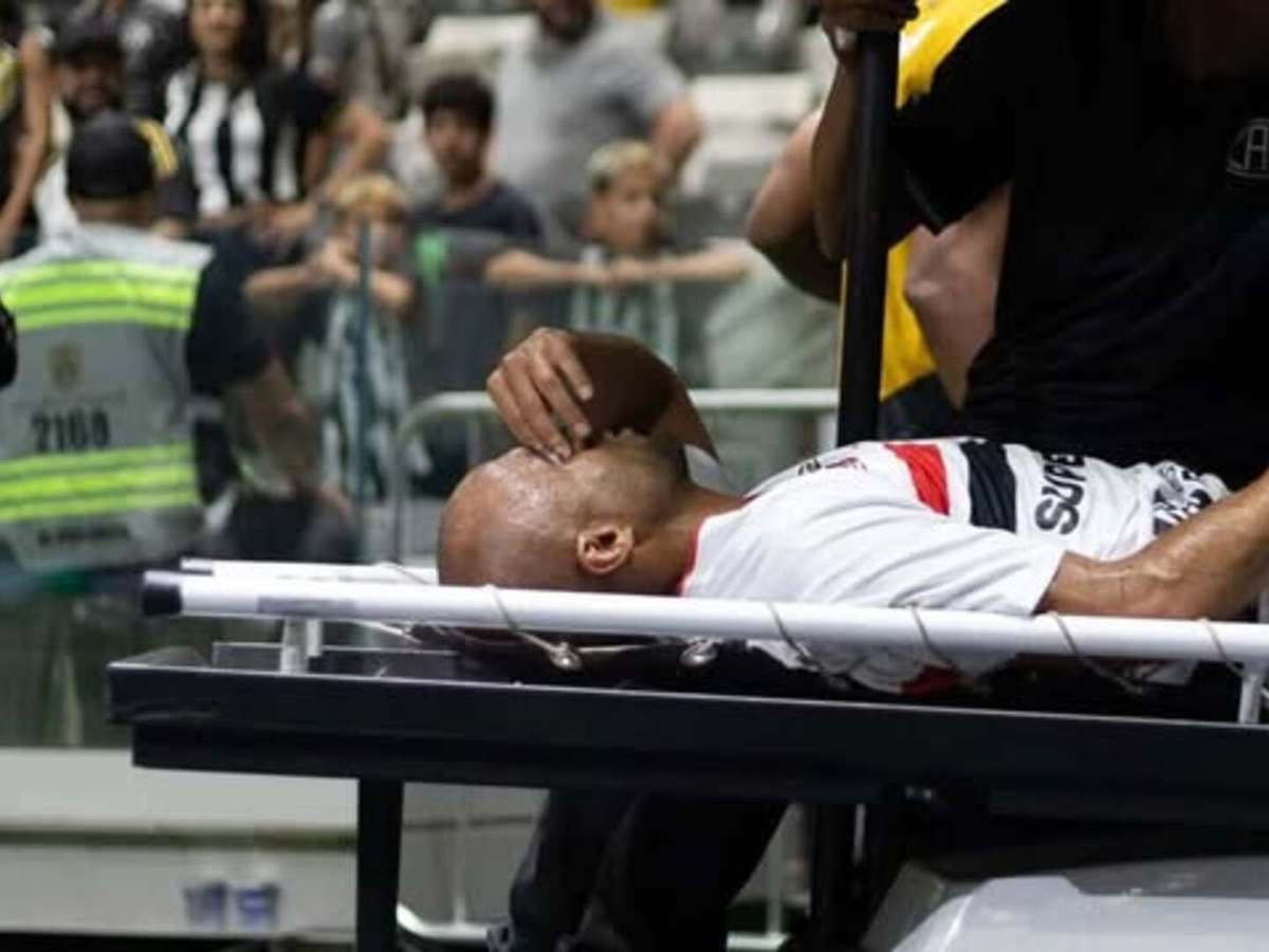 Lucas Moura deixou o campo no meio de uma partida contra o Atlético Mineiro após um forte choque; O jogador foi embora de ambulância