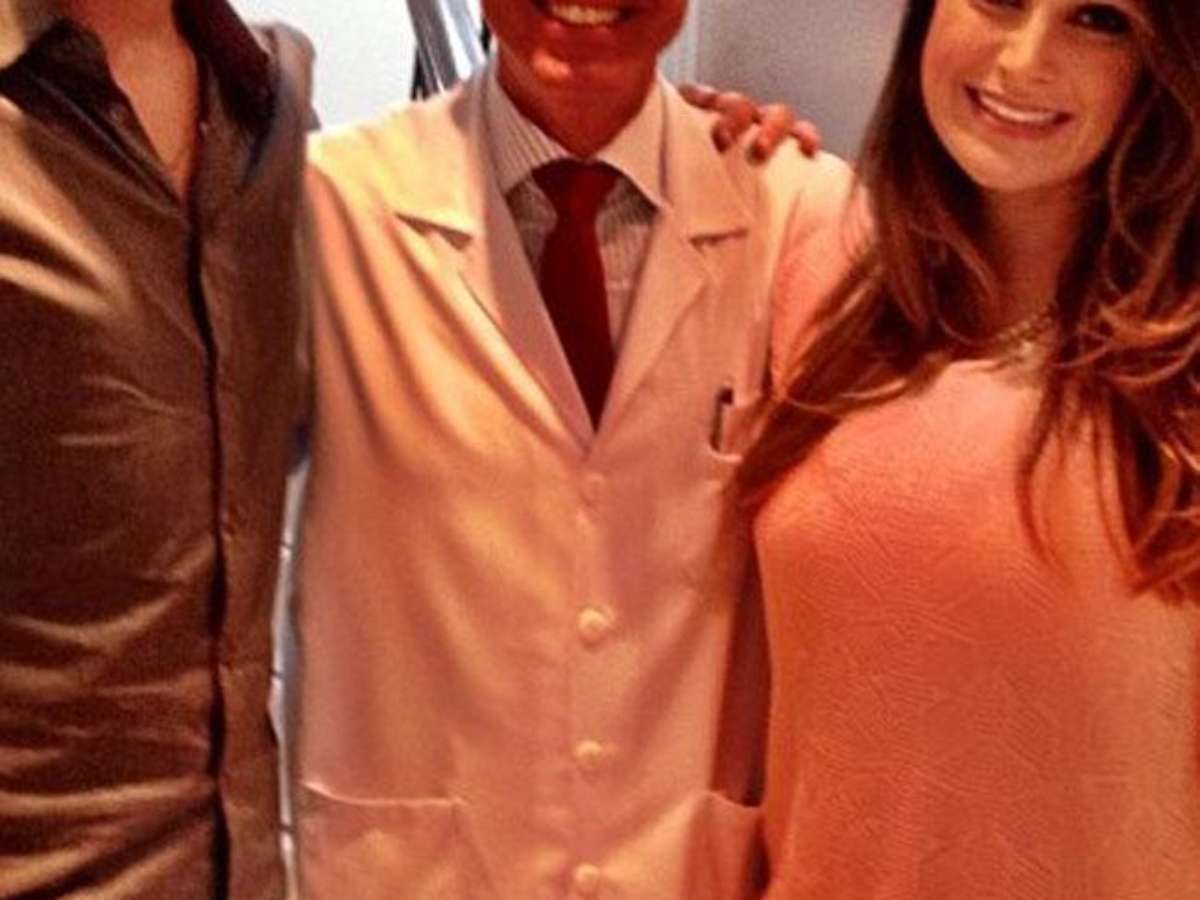 A ex-miss Brasil e apresentadora Natália Guimarães, 28 anos, postou, em sua página no Instagram, uma foto em que aparece ao lado do médico José Bento e do namorado, Leandro, ex-KLB e atual deputado estadual. Grávida de gêmeas, a modelo foi ao consultório fazer uma consulta de rotina.