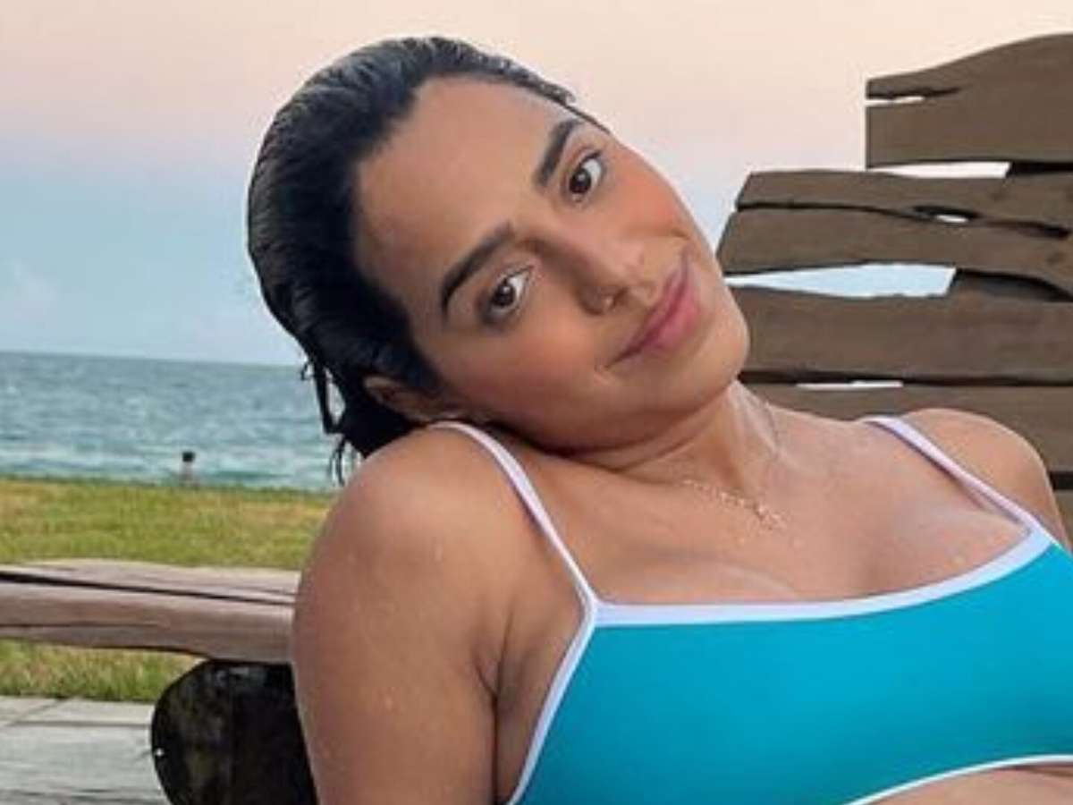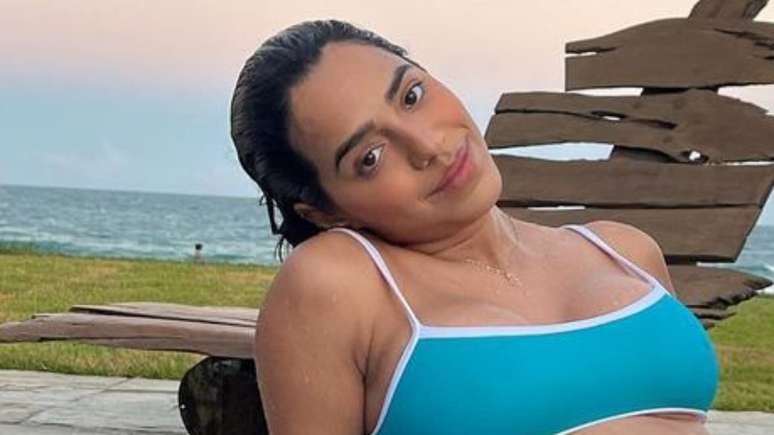 Grávida, Mirella Santos posa de biquíni e mostra barrigão enorme