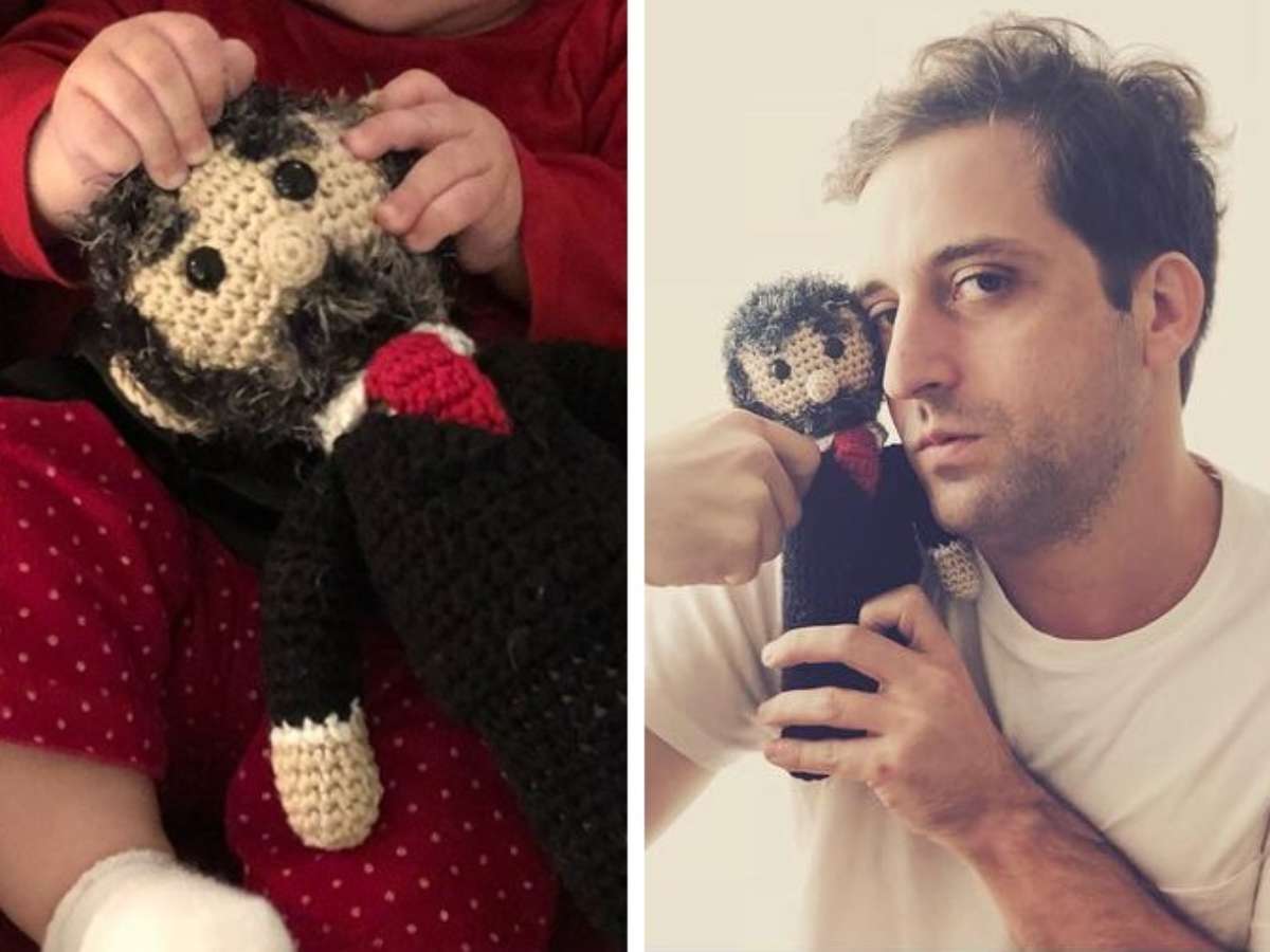 Sem mostrar o rosto da criança, nascida em janeiro, Gregório fotografou a pequena brincando com um bonequinho feito de crochê. O brinquedo de pano conta com uma 'barba' semelhenate à do ex-presidente Lula, 'vestido' com terno e uma gravata vermelha.