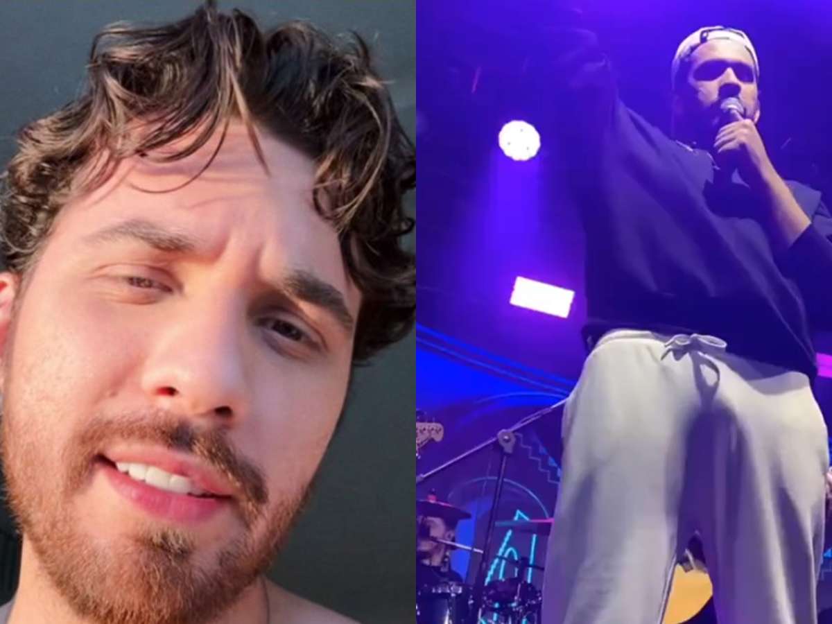 O artista, filmado do palco, usava uma calça que deixava em evidência o 'volume' das partes íntimas. "Eu gosto tanto desse vídeo que eu só consigo olhar pro boné", ironizou uma internauta. "Ele se apresentou com o violão na calça", brincou outro.