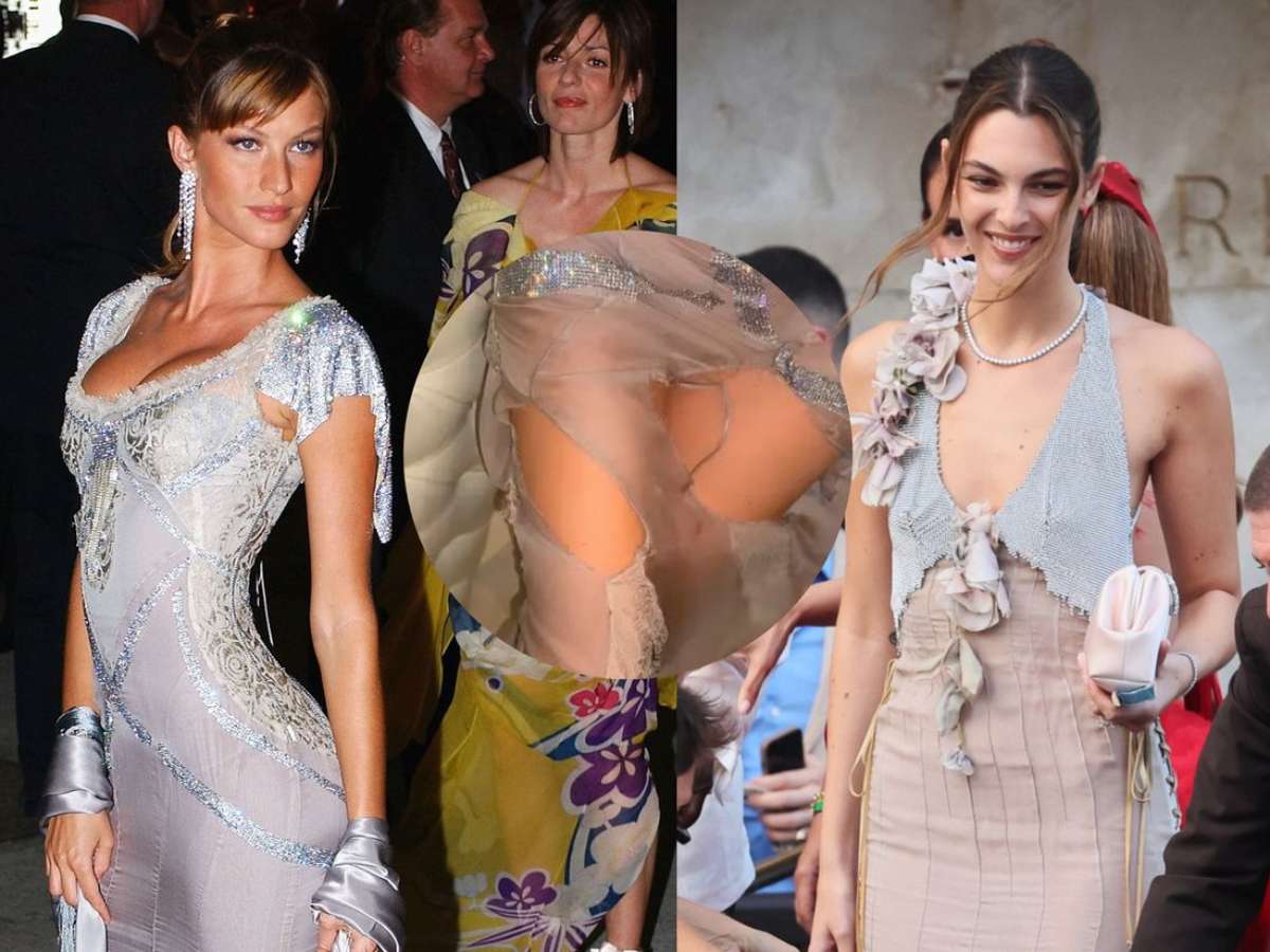 A modelo italiana Vittoria Ceretti chamou atenção no terceiro dia das celebrações do casamento do bilionário Jeff Bezos com a apresentadora Lauren Sánchez, realizadas no fim de junho, em Veneza. A top, que namora o ator Leonardo DiCaprio, atraiu os holofotes ao surgir com um vestido vintage da Dolce & Gabbana: o mesmo modelo usado por Gisele Bündchen no Met Gala de 2003.