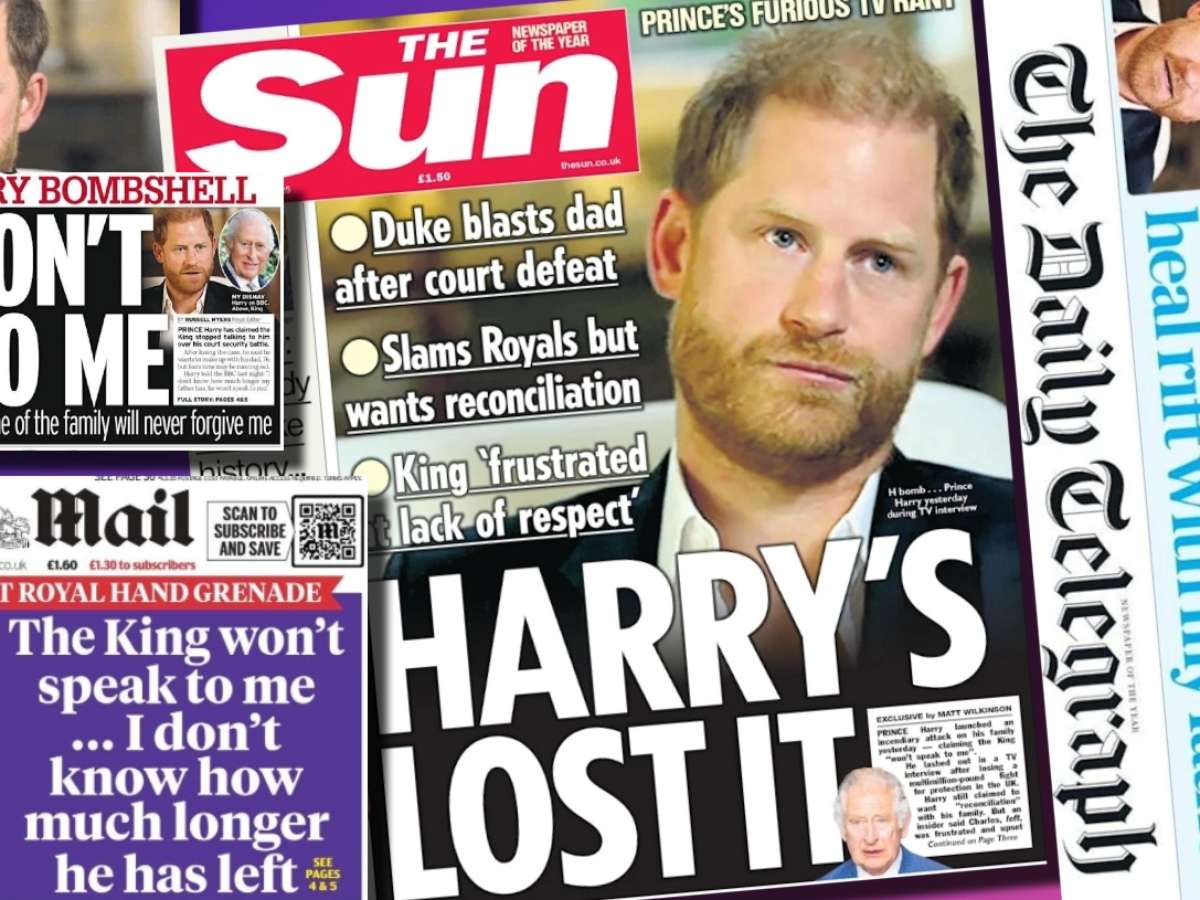 A manchete do tabloide ‘The Sun’ destaca que Harry está completamente perdido. Demorou, mas caiu a ficha dos equívocos cometidos contra sua família. Em entrevista ao canal BBC, ele adotou tom vitimista ao sinalizar a intenção de se reaproximar dos parentes.