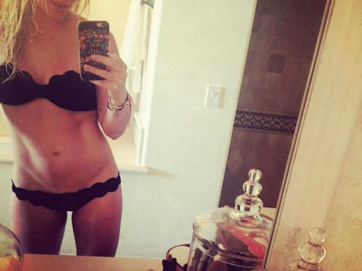 A atriz e cantora Hilary Duff está curtindo as férias ao lado do filho e aproveitou a oportunidade para mostrar que está com o corpo em dia. De biquíni, ela postou foto de selfie diante do espelho e escreveu na legenda: "Ei mamães, nós ainda temos que amar nossos corpos".