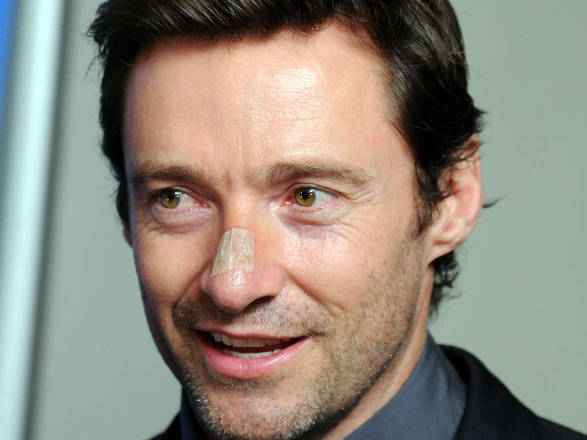 Hugh Jackman aparece em evento com curativo no nariz