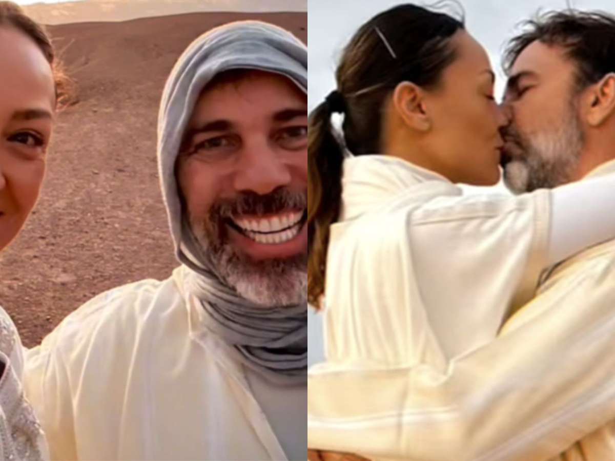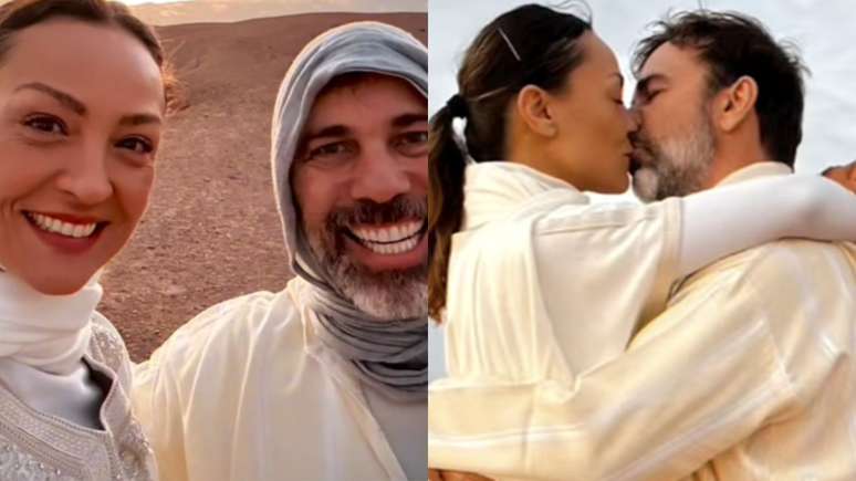 Ator Marcelo Faria e Thatiana Travassos escolheram o deserto no Marrocos como cenário do casamento; veja os registros