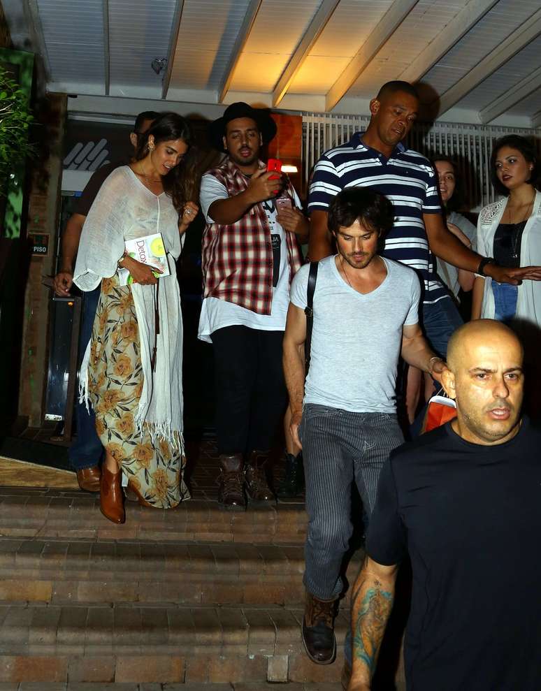 Ian Somerhalder janta em clima romântico e se despede do Rio