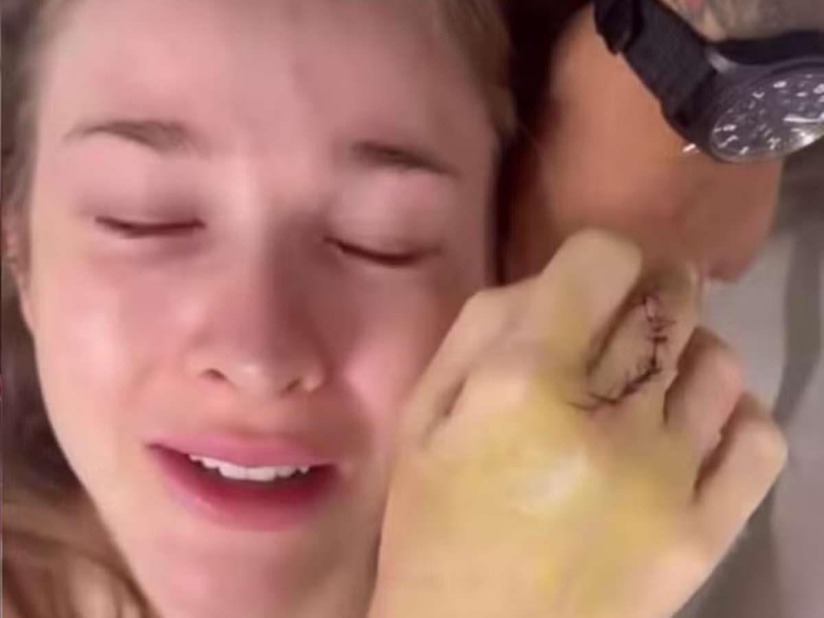 "Olha aqui! Meu Deus, eu virei um Frankenstein", afirmou. "Estou passando mal", acrescentou a ex de Pyong Lee, visivelmente abalada em um vídeo publicado nos Stories do Instagram, onde mostrou o dedo médio e parte da mão costurados.
