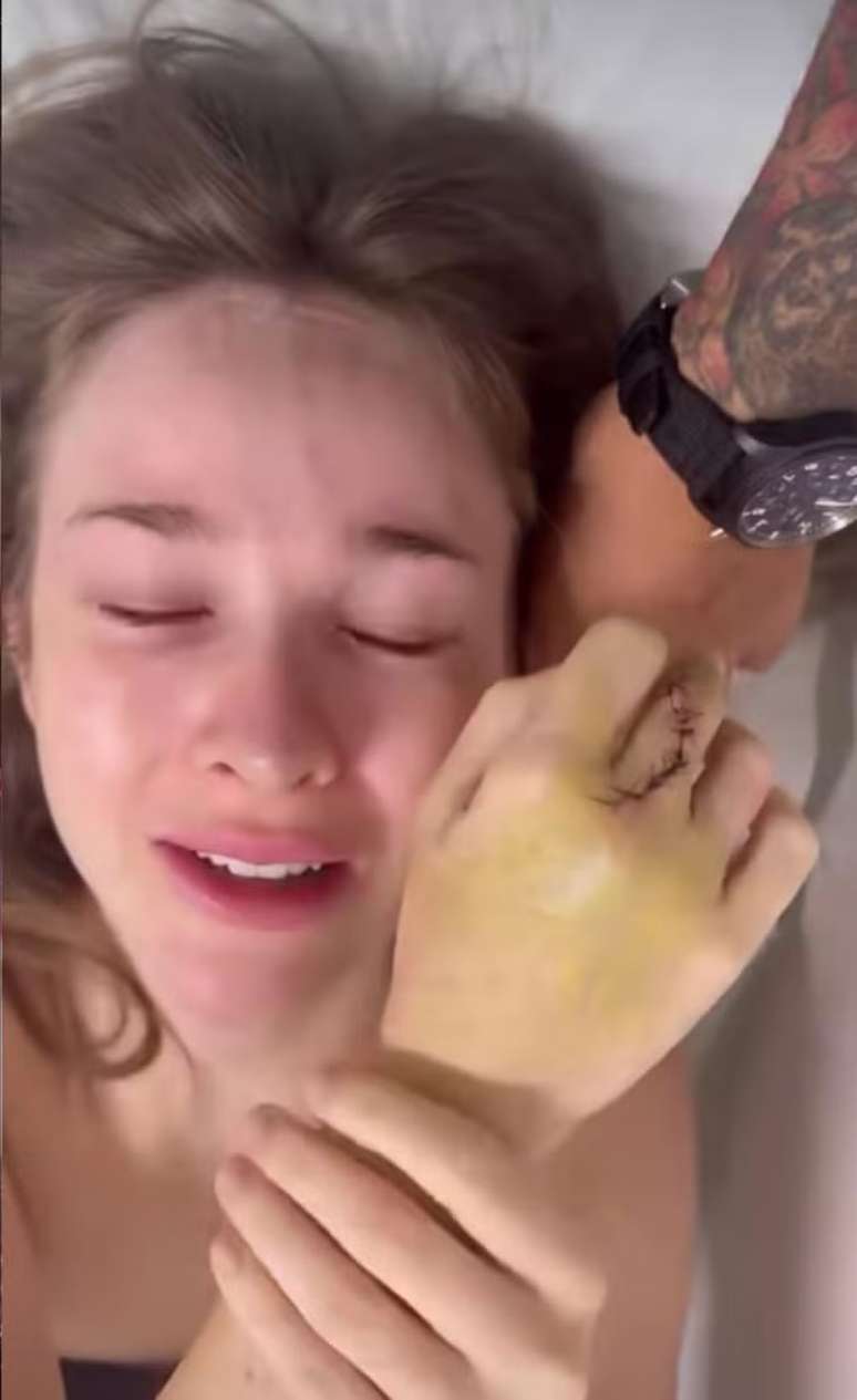 Sammy, de 25 anos, ficou desesperada nesta segunda-feira, 30, ao se deparar com os pontos da cirurgia realizada na mão direita, quatro dias após o procedimento. A influenciadora, que se feriu em um acidente durante um salto de paraquedas, se emocionou ao comparar a aparência da mão com a de uma figura monstruosa da literatura.