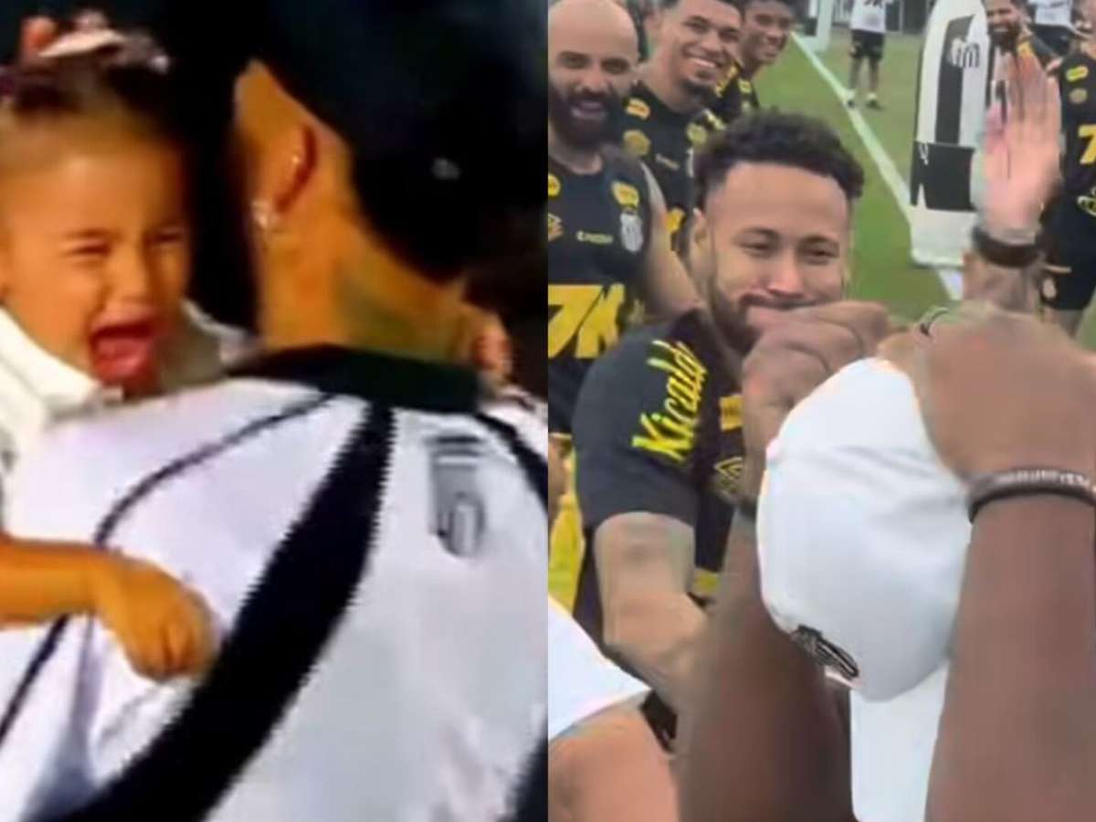 Jogador de futebol Neymar se vinga após a filha Mavie levar bolada durante jogo do Santos contra Corinthians; veja vídeo