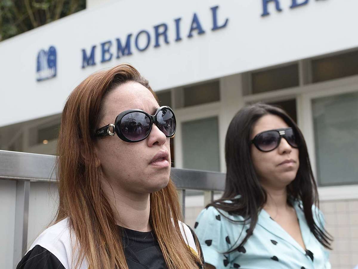 Às 10h desta terça-feira (10), o velório de Champignon foi reaberto ao público, no Memorial Necrópole Ecumênica, em Santos, litoral paulista. O músico foi encontrado morto na madrugada desta segunda-feira (9) com um tiro na cabeça. Na foto, as irmãs de Champignon, Eliane e Daniele Duarte