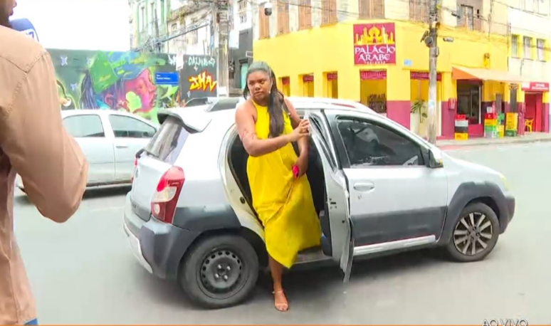 Raquel Brito se incomodou com a presença de repórteres na porta da delegacia