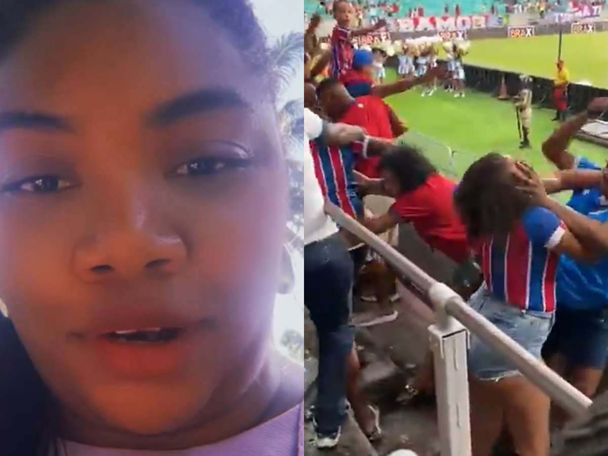 "Às vezes eu acho que as pessoas ficam procurando coisa, e como não estão achando tem tempo, ficam caçando e lançando fake news. Não sou eu ali não", criticou. Por fim, ela reforçou sequer torcer para o time que jogava durante a briga: "E deixa eu dizer mais a vocês: o pessoal que me acompanha sabe que eu torço para o Vitória, não torço para o Bahia".