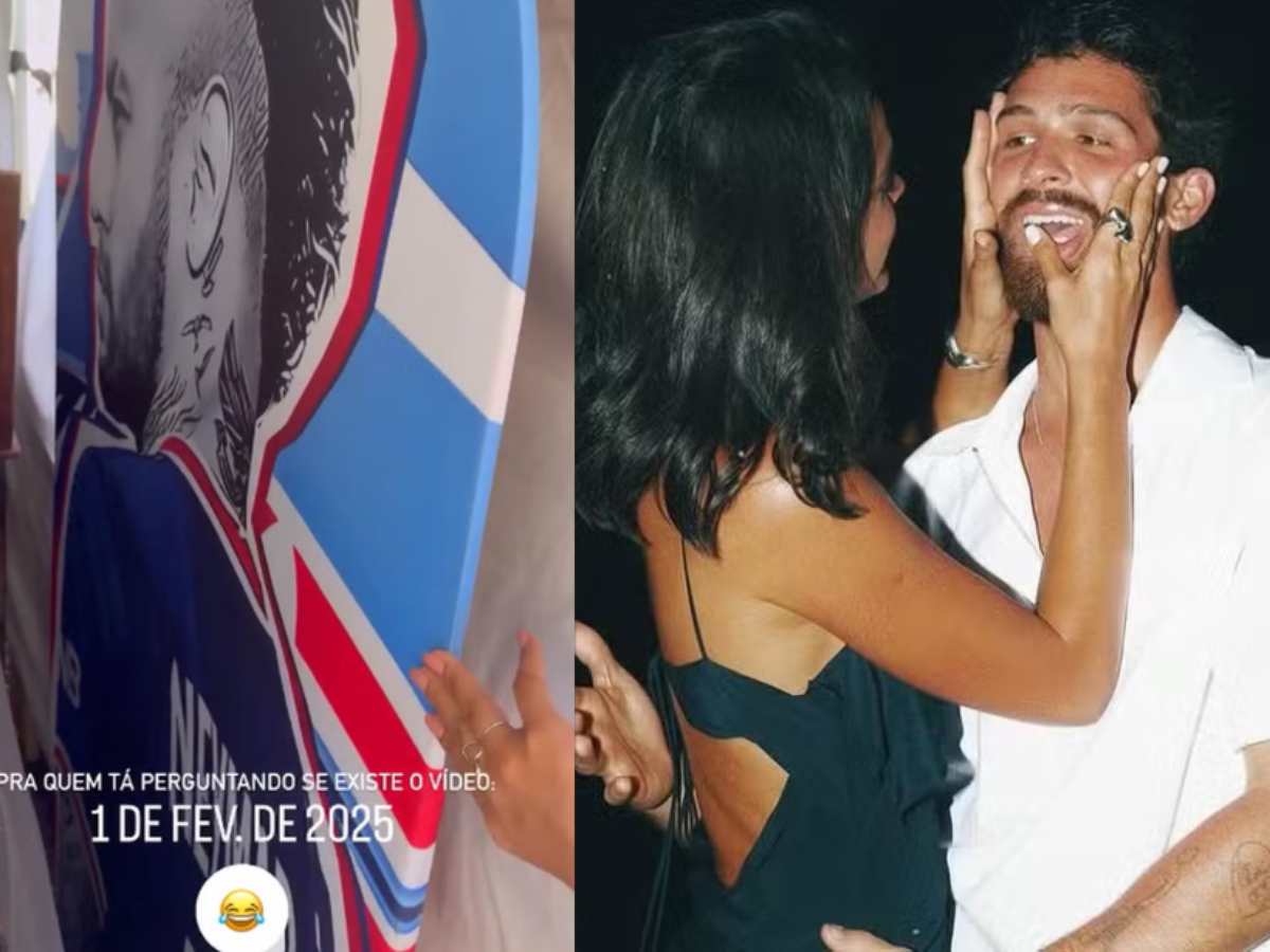 Jéssica acrescentou que a homenagem ao jogador acabou sendo ajustada. “A gente colocou o uniforme do jogador que ele gosta muito”, explicou, referindo-se ao aniversariante. Ela também falou sobre como esses eventos costumam acontecer na família. “Esses aniversários são sempre assim, meio caóticos”, brincou.