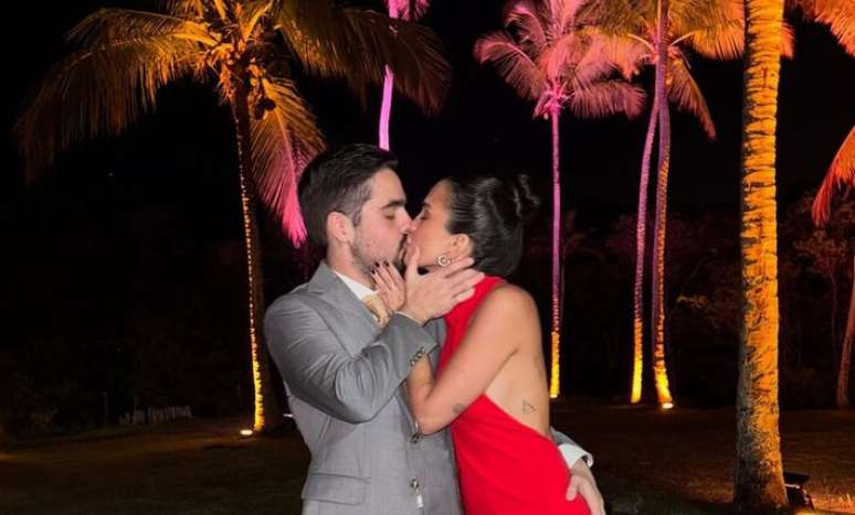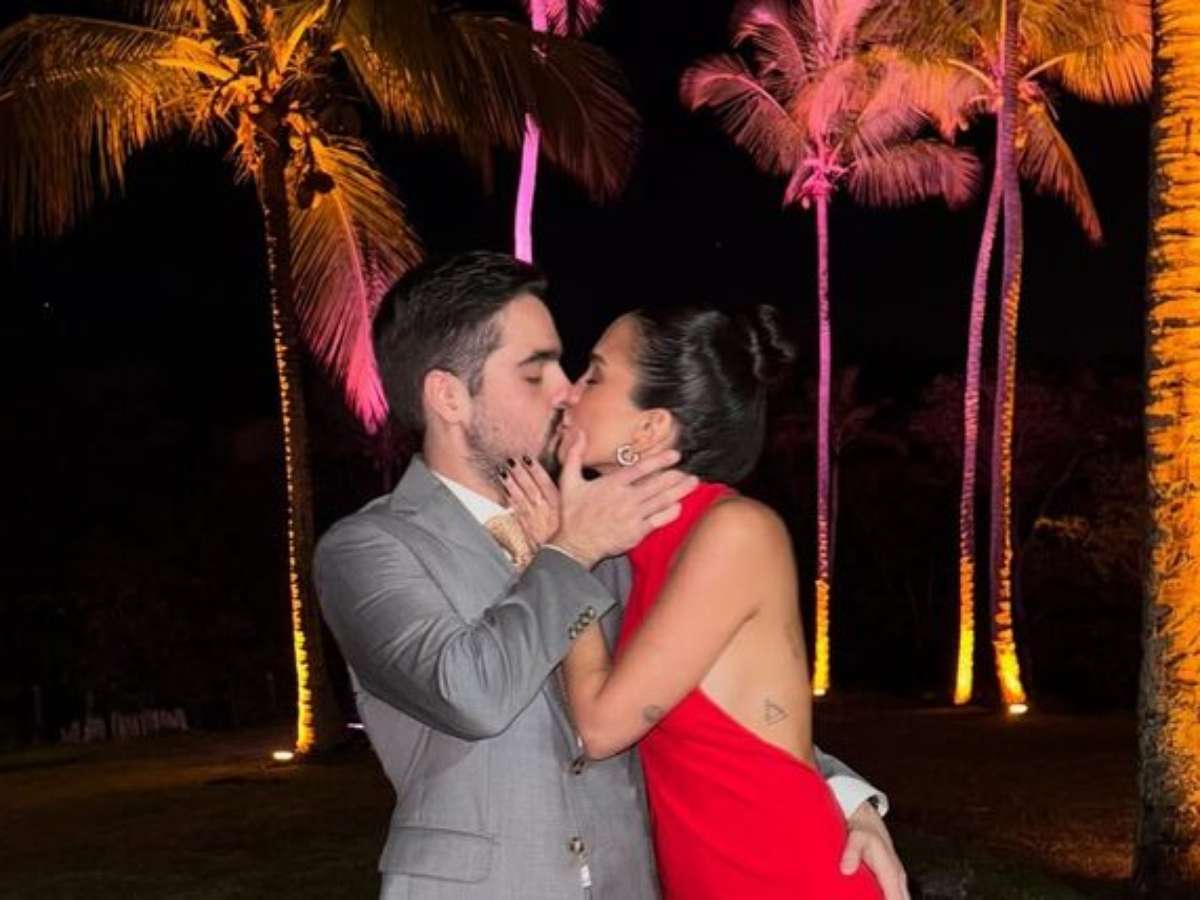 Na imagem, os dois aparecem como convidados de um casamento em Trancoso, na Bahia. O filho de Faustão legendou a foto apenas com um emoji de coração branco.