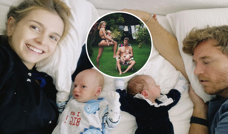 Agora mãe de dois, os gêmeos Mel e Bento, nascidos há pouco mais de 4 meses, a vencedora do "Masterchef 2021" decidiu recriar o clique. Para isso, ela e o namorado ficaram exatamente nas mesmas posições, só que, agora, cada um com um dos bebês no colo. "Imaginaram?", questionou a legenda da foto.